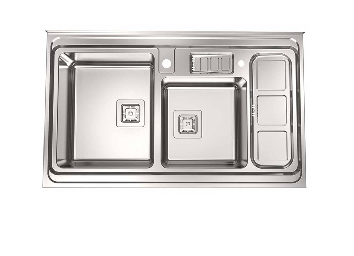 سینک 2 لگن فانتزی 853 روکار استیل البرز دارای زیرآب های مربع و جدید و.محل قرار گیری شیرآب در سینک استیل البرز روی سینک هست