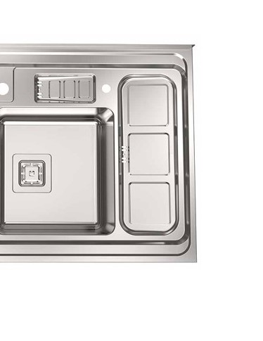 ظرفیت لگن این سینک 45.7تر و همچنین دارای جامایع، جا اسکاج، تخت کار و سبد میوه شور هست